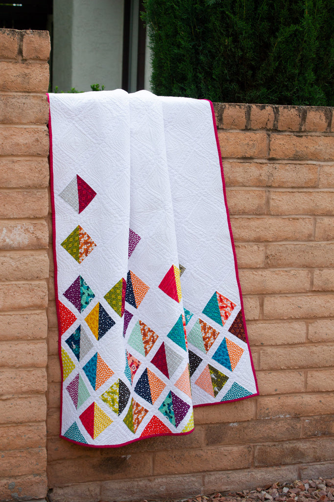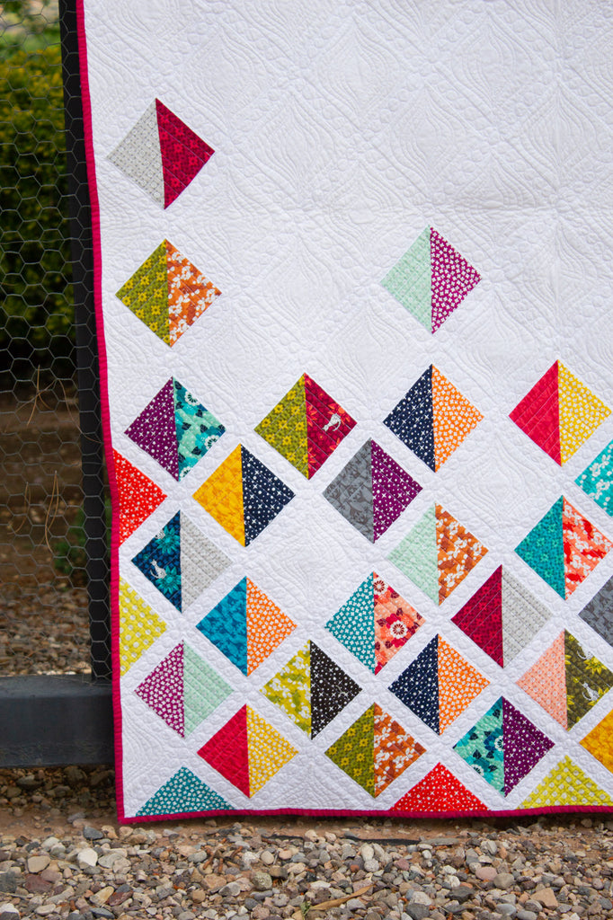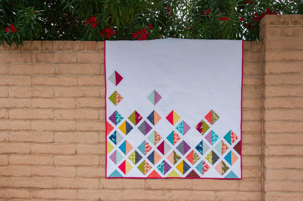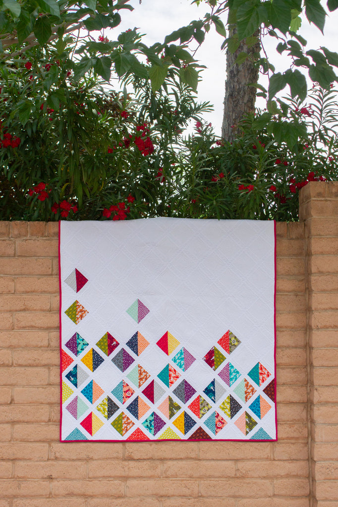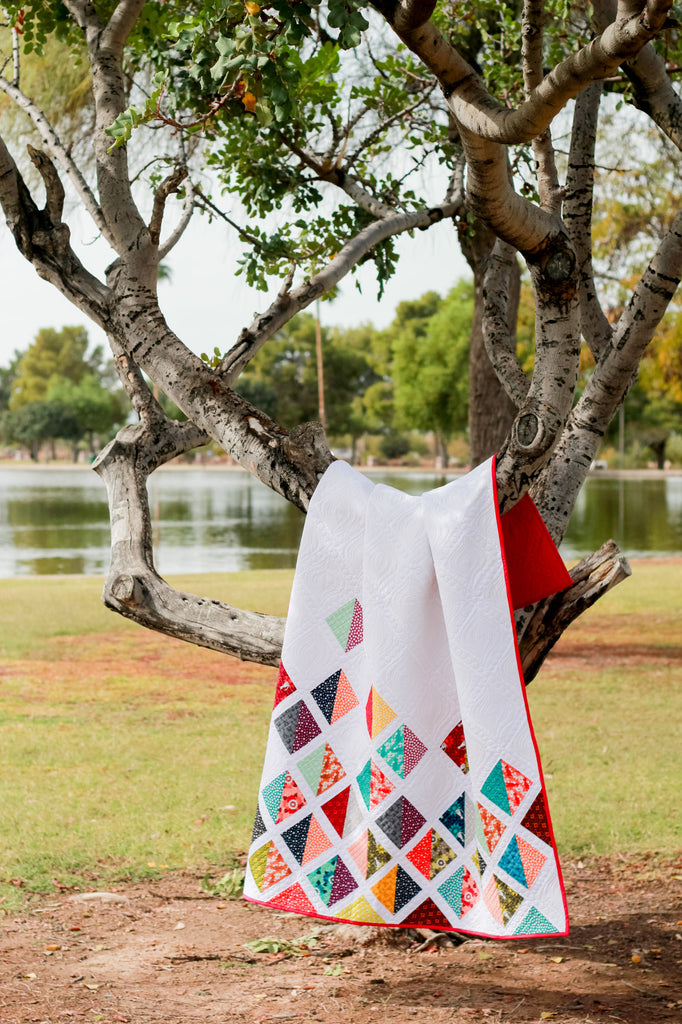 Spellbound is a simple modern quilt pattern combining half square triangles and negative space to highlight your favorite charm pack. Or dig into your scraps to create your own charm pack. The pattern includes full color diagrams for easy construction.