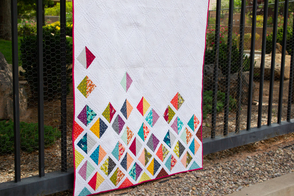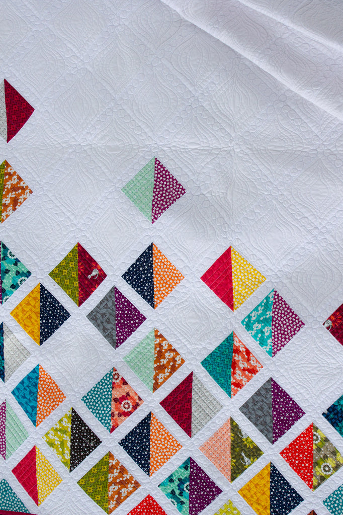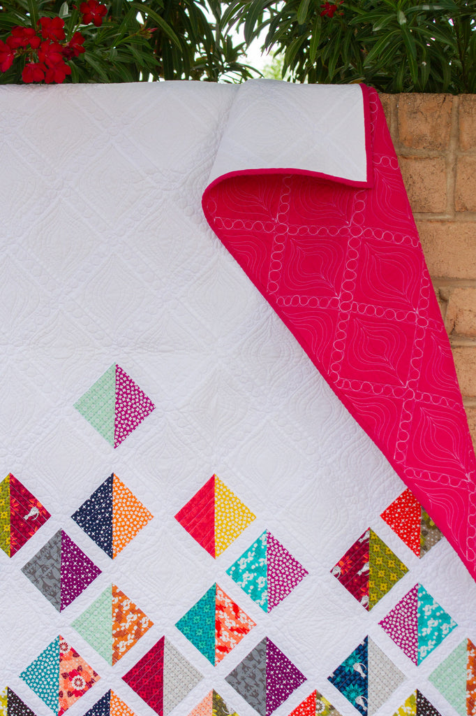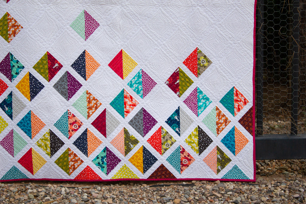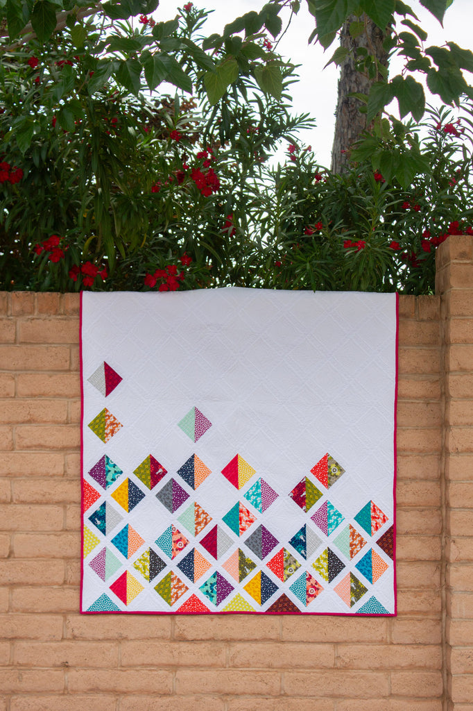 Spellbound is a simple modern quilt pattern combining half square triangles and negative space to highlight your favorite charm pack. Or dig into your scraps to create your own charm pack. The pattern includes full color diagrams for easy construction.